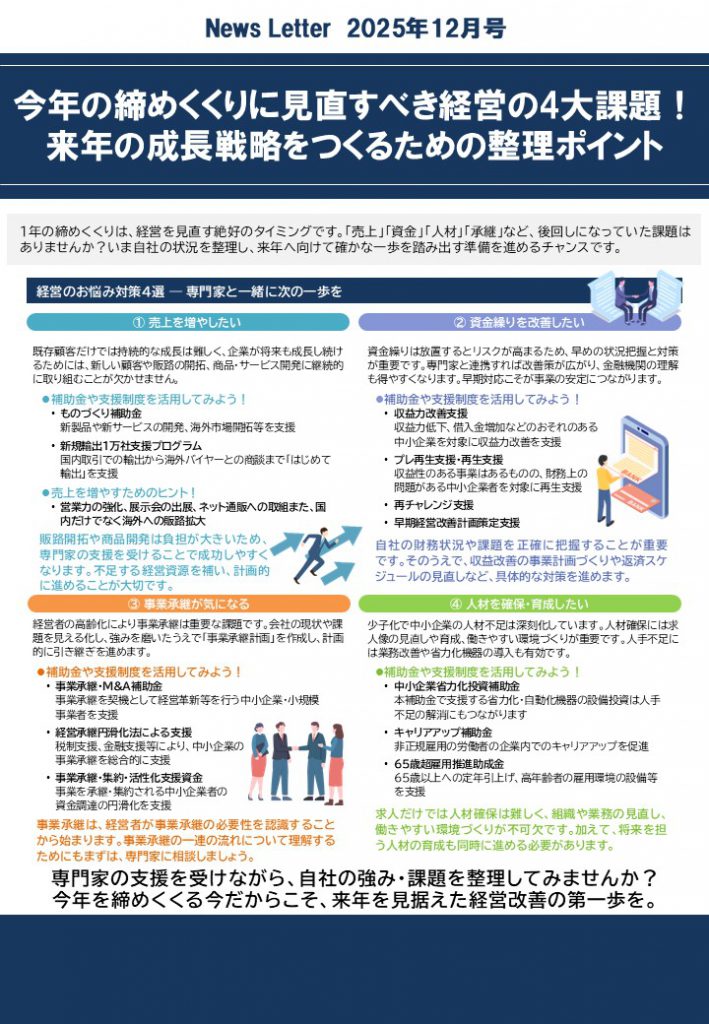 1年の締めくくりは、経営を見直す絶好のタイミングです。